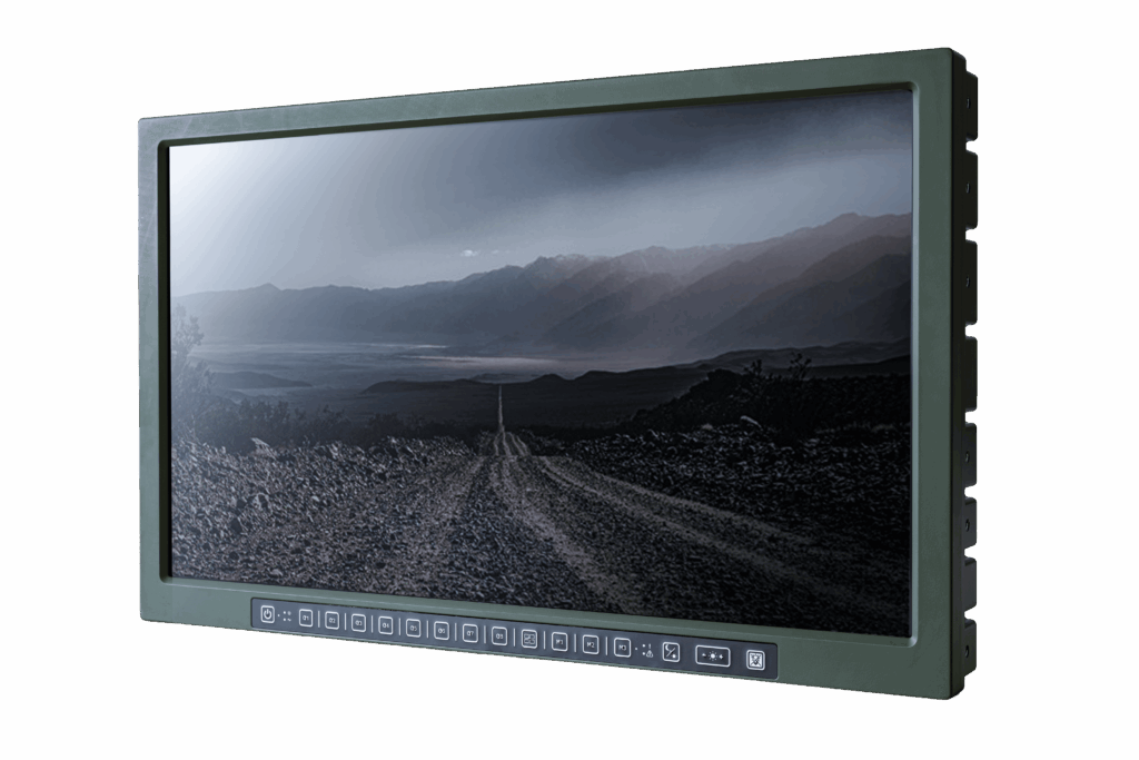This 31.5” rugged TFT-LCD features Full HD resolution (1920×1080) and a PCAP touchscreen with Mesh, optically bonded for clarity and durability. With IP65 protection and compliance with MIL-STD-810 and MIL-STD-461, it’s built for tough environments. The display offers HD-SDI video input and backlit user-programmable buttons in the front.